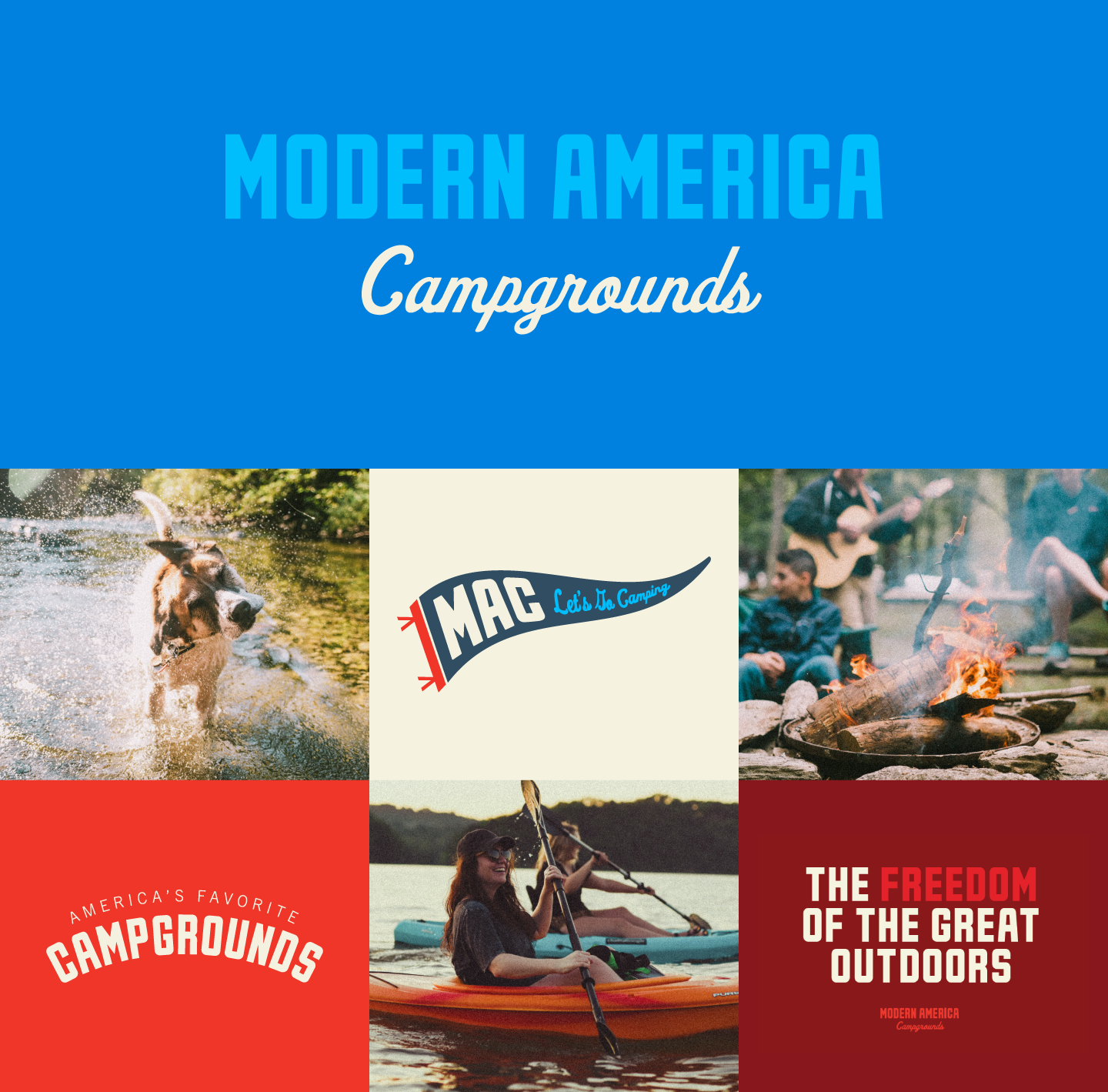 Modern America Campgrounds is a private equity group that holds the largest network of campgrounds in the New England coastal states. Their goal is modernizing the campgrounds through a web reservation system that allows for reservations and digital payments while maintaining the simplicity of their beautiful real estate.As part of the consolidation as Modern America, LWG was tasked with creating a brand that leans into the nostalgia of a classic American vacation. Starting with mood boards, the team worked through a balance of historical authenticity with modern functionality to develop logos through our sketching process. Once the brand mark was selected, we expanded the system through color ways, fonts, photography styles and templates for use to launch immediately as they rapidly headed into peak reservation season.